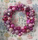 Couronne de Noël réalisée à la main, composée d’un assemblage raffiné de boules aux tons rose, fuchsia, vieux rose et nacré. Jeux de brillances et de textures pour un rendu élégant, lumineux et résolument festif.